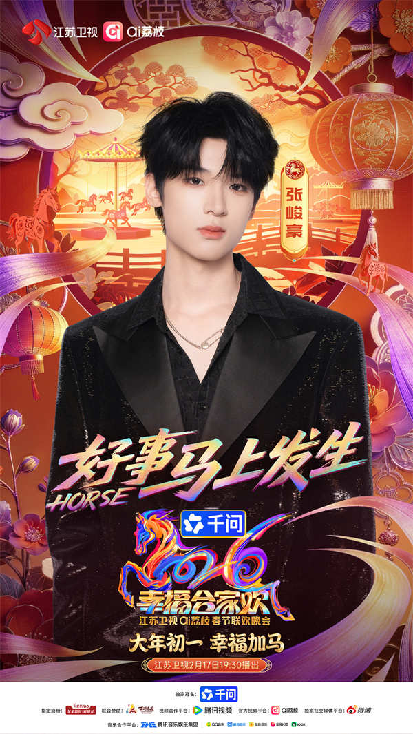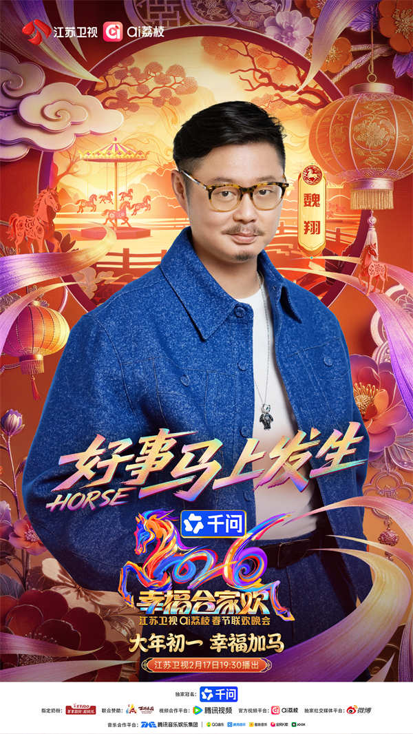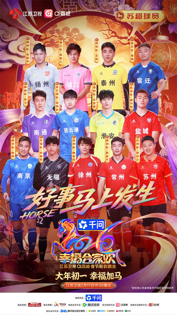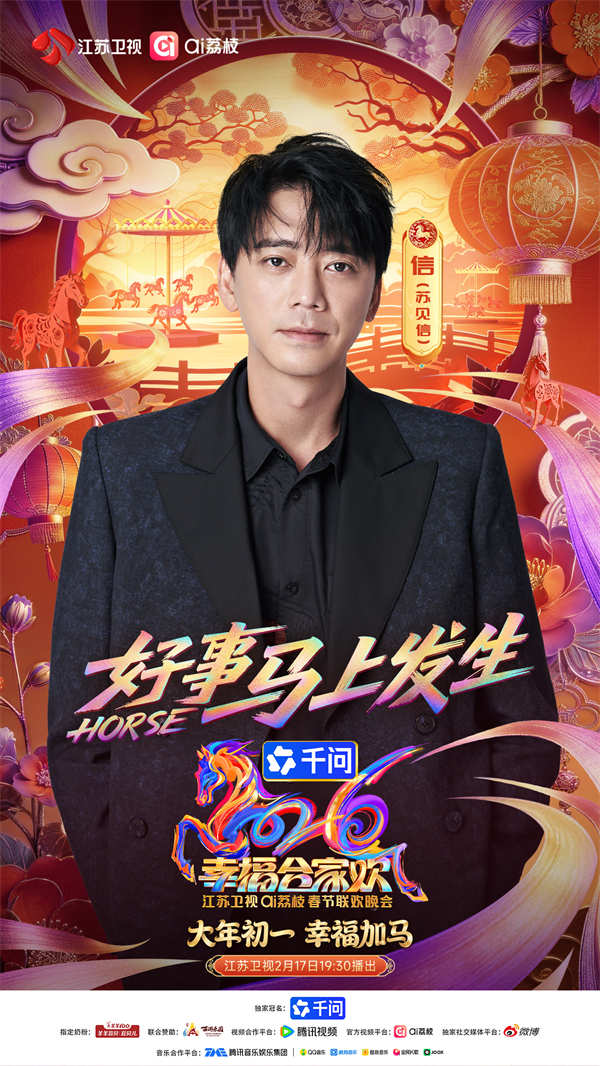 马跃新春福满盈,阖家欢乐贺新春!由“千问app”独家冠名的《幸福合家欢·2026江苏卫视ai荔枝春节联欢晚会》今日正式官宣首波嘉宾阵容!