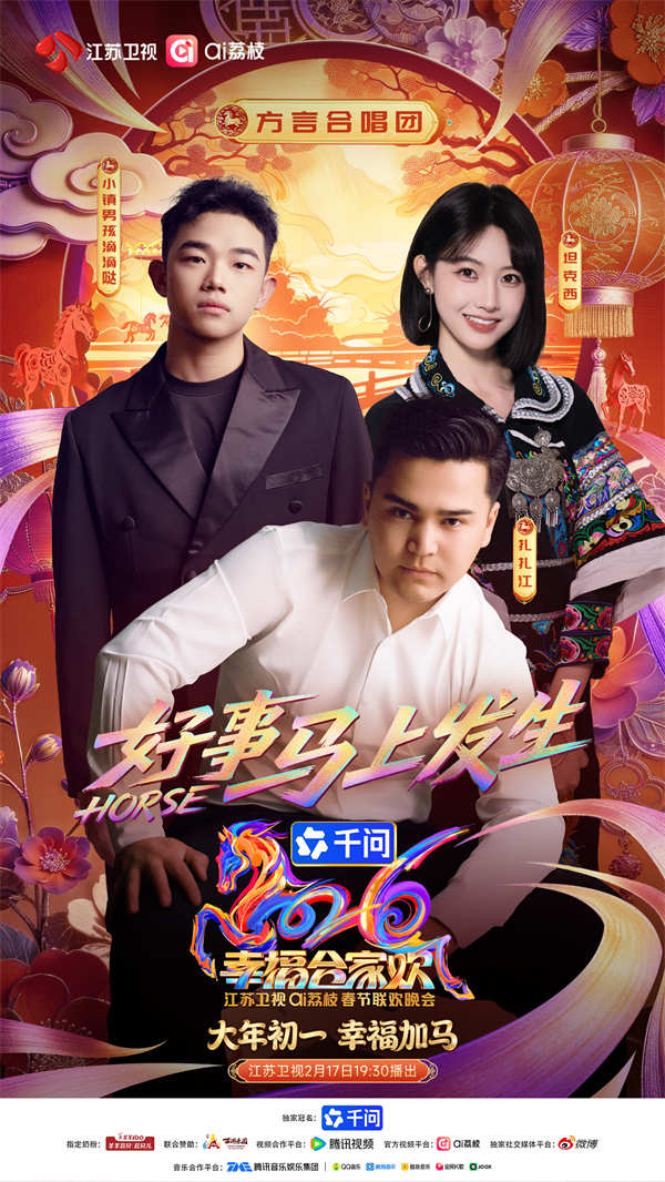 2月17日(大年初一)19:30,锁定江苏卫视、 ai荔枝《幸福合家欢·2026江苏卫视ai荔枝春节联欢晚会》,让我们在歌声与笑声中,共迎幸福美满的新春!