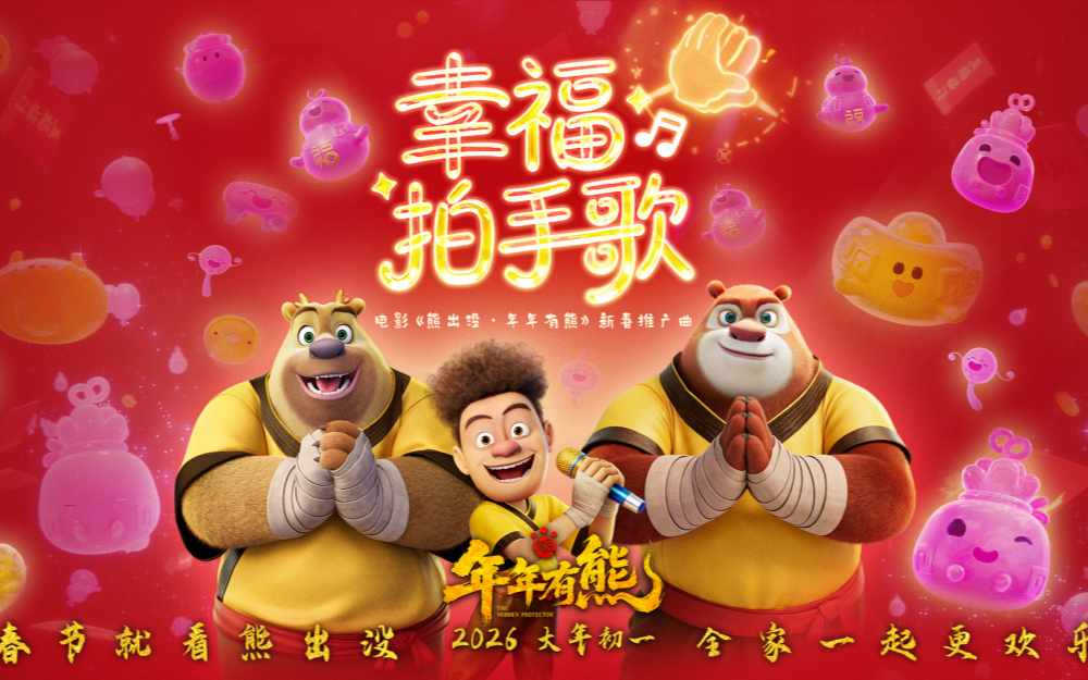 今日将于2026年大年初一上映的影片《熊出没·年年有熊》发布新春推广曲《幸福拍手歌》MV,