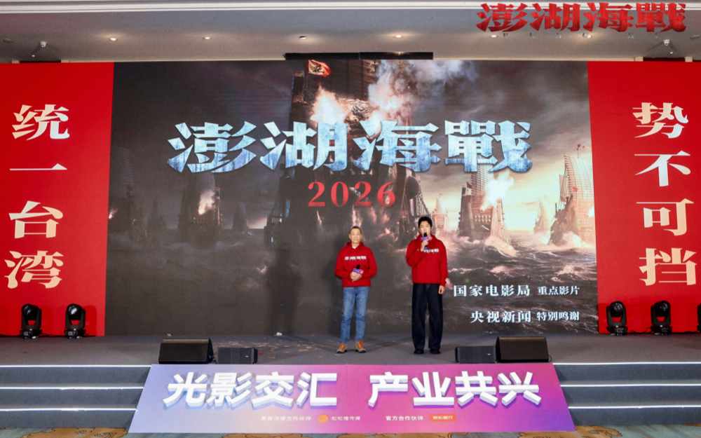 在第二十八届全国影片推介会上,电影《澎湖海战》主演王学圻、侯雯元与横漂十三年演员沈凯共同亮相横店