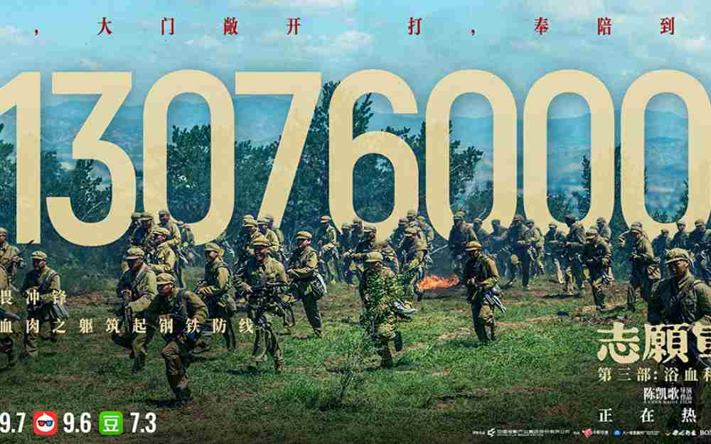 由中影集团领衔出品的电影《志愿军:浴血和平》自9月30日上映至今,累计票房已突破5亿,累计观影人次已突破1307.6万。
