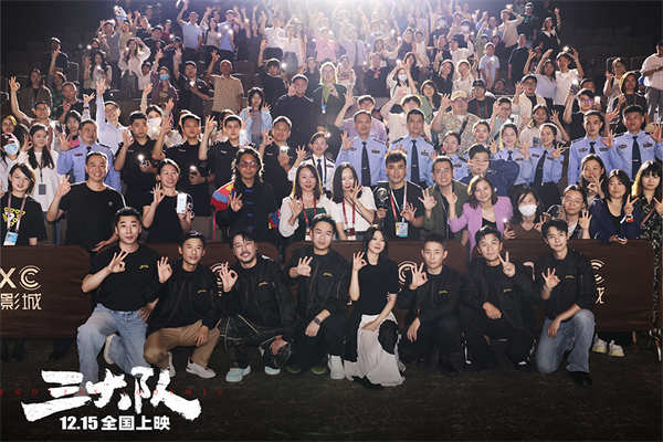放映现场不仅有主创团队讲述幕后创作故事,厦门市公安局民警也到场观影。映后交流会上,一名民警代表发言:“我看到影片塑造的‘刑警’形象,就好像看见了我曾在一线奋斗的师父。”一名刑侦大队重案队民警也按捺不住激动的心情表示:“观影过程中,我一直感同身受,把一帧一毫都看进心里去了。有好几次都想流泪,想和队里的兄弟们聚一聚联络一下感情。”主创团队还与厦门市公安局青年民警合唱团现场共同清唱歌曲《少年壮志不言愁》致敬所有警察,感谢他们不舍昼夜的守护。首批观影结束后,不论是公安民警们还是普通观众都充分肯定了电影的社会意义,认为电影把“警察”二字所代表的含义展现得淋漓尽致,将个人的抉择与时代变迁之间丝丝缕缕的关系走心地传递出来。不少观众纷纷表示看完后很受震撼:“非常典型的团队和人物,用不凡的意志呈现了一个不凡的故事。”还有观众自发将影片列为贺岁档观影首选,“无比鲜活的群像与无比细腻的感情,让人在开场几分钟内就信服了三大队的存在”、“演的不仅是三大队的故事,还是中国人人定胜天的信念”……首波口碑的出炉也让暂未观影的网友们羡慕不已,纷纷表示期待12月15日与电影在影院相见!