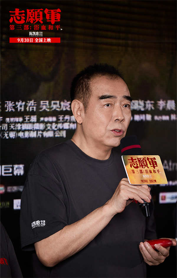 电影《志愿军:浴血和平》于昨日在北京举办首映礼,总出品人、总监制、总发行人傅若清,导演陈凯歌,出品人、总制片人陈红,编剧张珂,演员张子枫、宋佳、朱亚文、陈飞宇、彭昱畅、郭涛、周政杰、张宥浩、吴昊宸、李晨、阿如那、曲禾、王雨甜集体亮相,为大家解读影片细节和人物结局,共赴一场三年之约。从剧本筹备至今,《志愿军》系列的制作周期长达五年,如今第三部即将和全国观众见面,导演陈凯歌的内心格外感慨:“时间过得真快,到这个时候才能感受到一种珍贵的情谊,到底是这部电影陪伴了观众三年?还是观众们因为志愿军的缘故,陪伴了这部电影三年?我都说不清楚了。我觉得在70多年之后,我们仍然能够记得那些给我们今天的生活付出生命、英勇牺牲的战士们,我很感动,非常感谢我们的观众。”作为系列最后一部,《志愿军:浴血和平》整部影片中出现了许多各种各样的照片,对此导演解释道:“我们小时候可能都有这样的经验,还没桌子高就站在桌子前看那上面的照片,所有的东西都好像在那一瞬间定格了。照片是我们与过去的联结,也是我们和英勇奋战的志愿军战士的联结。最后这些牺牲者的照片,并排放在李家的台子上,这是我们对整个影片的回顾。”回首《志愿军》三部曲,导演一直强调“有关人的故事才是真正有价值的”,因此影片将更多的篇幅留给了无名的志愿军战士,定档时那张庆祝和平的群像海报令人印象深刻,出品人、总制片人陈红解释道:“抗美援朝战争出现了很多有名有姓的英雄,但更多的是千千万万个平凡、年轻的士兵,他们来自全国各地,带着家乡泥土的味道和对故乡的思念走入朝鲜战场。我们当时就是被这张海报上战士们取得和平、取得胜利的欢笑感染的,我觉得这才是志愿军真正的样子,这才是志愿军精神的温度。”