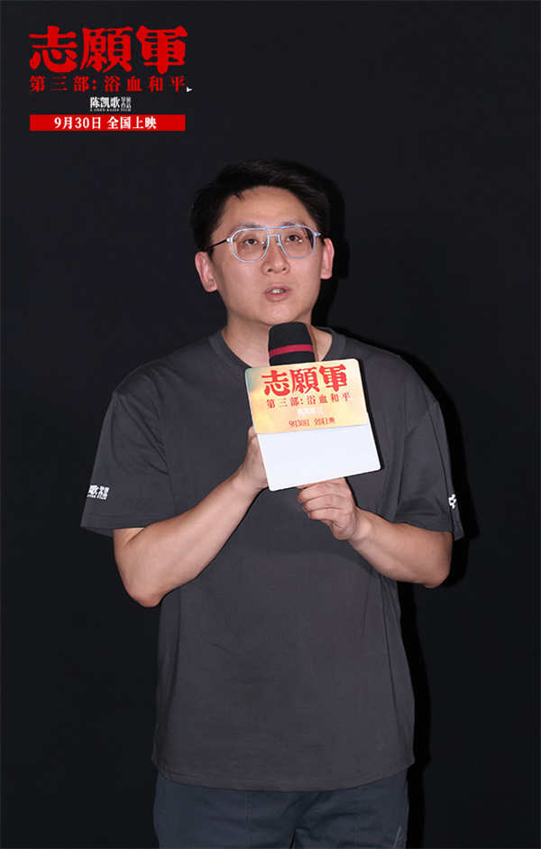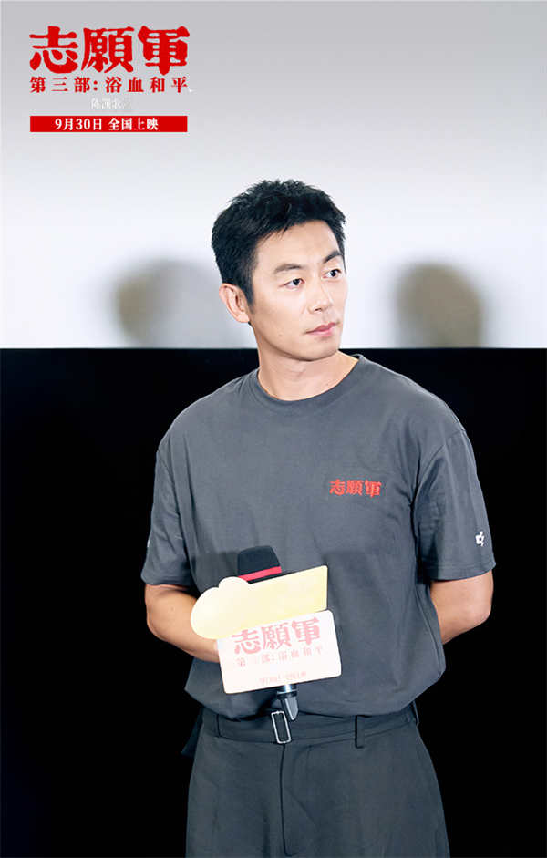 五年的创作历程也让总出品人、总监制、总发行人傅若清格外感慨:“从2023年的国庆到今年的国庆,用了三年的时间向全国人民展现了抗美援朝艰苦卓绝的三年,我想我们已经达到了当时拍这个影片的初衷,就是要把抗美援朝战争史诗性的历史进程用电影呈现出来,我也特别感谢所有主创,通过五年艰苦的奋斗把它呈现出来了。”《志愿军》系列陪伴观众三年,许多大家牵挂和讨论的角色也在《志愿军:浴血和平》中迎来了他们的故事结局。谈及成长,张子枫表示那块红色的石头就是李晓成长的体现:“第一次拿起那块石头的时候,她说朝鲜的每块石头都该这么用,因为她没办法消解掉那些无力;但当她再次拿起的时候,她将石头放到了林队长面前‘我们要知道姚排长为什么牺牲’,那时这块石头意味着和平,李晓坚定了要为何而战。”宋佳则解释了林月明对和平的坚守:“林月明是一个非常了不起的战士,她有温柔的一面、也有很有力量的一面。她坚信和平终会到来,我觉得这是她身上最大的信仰力量,林月明这个角色也让我对生命、对和平有了更深刻的敬畏。”朱亚文坦言吴本正入朝后见到的一切都对他产生了影响:“作为一个军工专家,见证了咱们的战士‘抵近进攻’的英雄壮举,我相信在他心中对于中国的军工发展是极其迫切的。如果吴本正看到今年的九三阅兵,他一定会上去摸摸我们自己的坦克。”陈飞宇则透露了孙醒对挑衅的敌军说出掷地有声反击话语时的心理活动:“战场上孙醒看到了太多战友的牺牲,我觉得他内心一直憋着一股劲,这种劲来自于对侵略者的愤怒,所以他最终选择大声说出自己内心的想法,让敌军知道中国人不是好欺负的。我认为他并不后悔,并且也坚守了自己的信念。”影片还为姚庆祥、李克农、黄继光等真实的历史人物赋予了许多人性弧光。对于姚庆祥不开枪的选择,彭昱畅解释道:“保护代表团是他的使命,但是捍卫和平是他的信念,所以他主动选择不去开枪。”郭涛则讲述了李克农演讲背后的用意:“李克农用数据说出了我们之前的屈辱史,最后他说我们要给21世纪的中国人留下一张什么样的照片,这就是我们的使命,他们做到了,志愿军们都做到了。”饰演黄继光的周政杰从自己的角度解读了这位战斗英雄的壮举:“黄继光的勇敢来自于信念,来自于他坚定的不想让自己的母亲失望、不想让后面的战友们失望,不要让自己的国家停在和平的前一刻。”张宥浩聊了杨三弟拍摄欢呼和平的那场戏:“那场戏我很紧张,但当我站在那里的时候,眼前像放电影一样,一幕一幕的都是过往和战友们的画面,‘要回家了’这个词也是自己不自觉说出来的,那一场戏我会记住很久。”吴昊宸表示张孝文也是在战场中得到的成长:“他入朝的时候还是一个‘新兵蛋子’,听的是松骨峰三连英勇的作战故事,孙醒的牺牲让张孝文的思想发生了很大的转变,后来遇到吴专家,才慢慢成长为一个真正的志愿军战士。在誓师大会上喊的那声‘到’,代表着他和上甘岭的张孝文共同完成了重要的使命。”对于这一个个鲜活的人物和他们之间的情感,编剧张珂说道:“我们通过三部曲的电影,讲述了一种传承,比如松骨峰三连的精神,通过孙醒又影响了张孝文;比如像林月明把她对于和平的热望传承给了李晓,这种传承也是我们讲述故事的一个手法。”看过电影后,电影总顾问梁建勇感触很深:“非常感谢大家来看这样一部经过五年制作的影片,我们从志愿军身上感受到坚韧不拔、有勇有谋、能谈能赢的精神,这种精神为我们赢得了和平,也看到浴血当中的和平和正义,这值得我们好好学习,向志愿军致敬!”