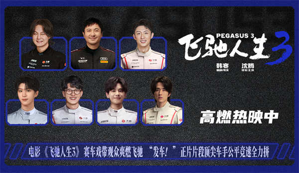 电影《飞驰人生3》由韩寒编剧并执导,沈腾领衔主演,尹正、黄景瑜、张本煜领衔主演,魏翔、沙溢主演,范丞丞、孙艺洲主演,段奕宏特邀主演,张新成、胡先煦、李治廷、白宇帆、周政杰、高华阳特别出演,贾冰、王安宇、陈永胜、冯绍峰、郝瀚友情出演。影片由上海亭东影业有限公司、天津猫眼文化传媒有限公司、大麦娱乐(北京)有限公司、万达影视传媒有限公司、北京博纳影业集团有限公司、中国电影产业集团股份有限公司、浙江开心麻花影业有限公司、浙江横店影业有限公司、上海儒意影视制作有限公司出品,正在高燃热映中。
