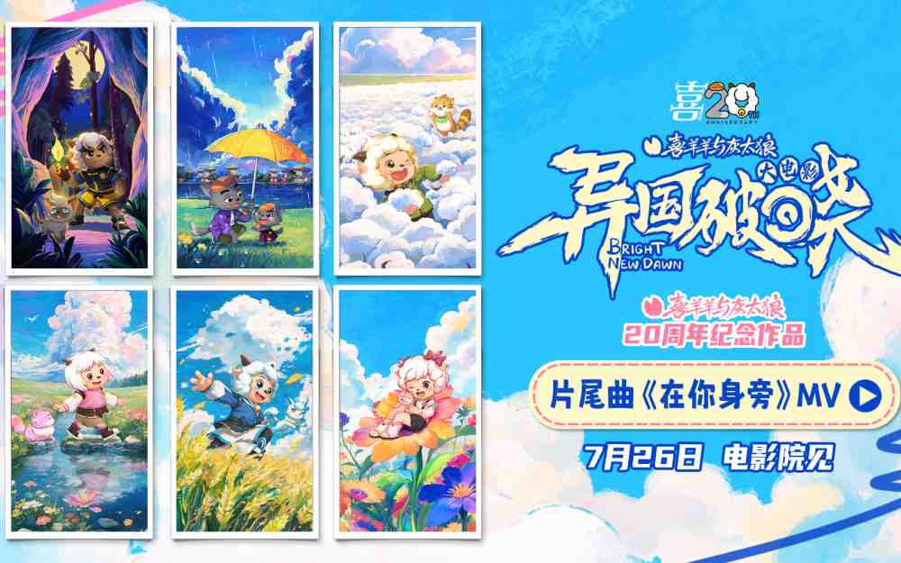国民动画经典《喜羊羊与灰太狼》系列20周年纪念作品——电影《喜羊羊与灰太狼之异国破晓》今日发布片尾曲MV和全新角色海报!